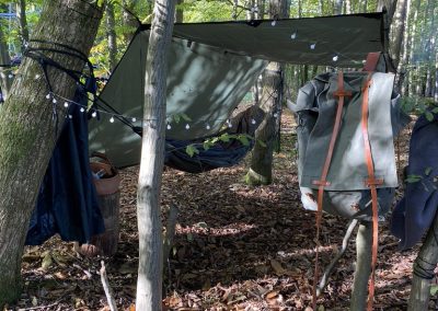 On arrival you will find the tree tent suspended in your own private camping area, with campsite fire bowl ready and waiting for you and your sleep gear.