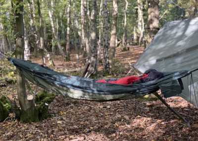 With a two part sleeping and living section all your equipment is kept off the floor, no more lumpy air beds, just full-on comfort suspended in this hammock.
